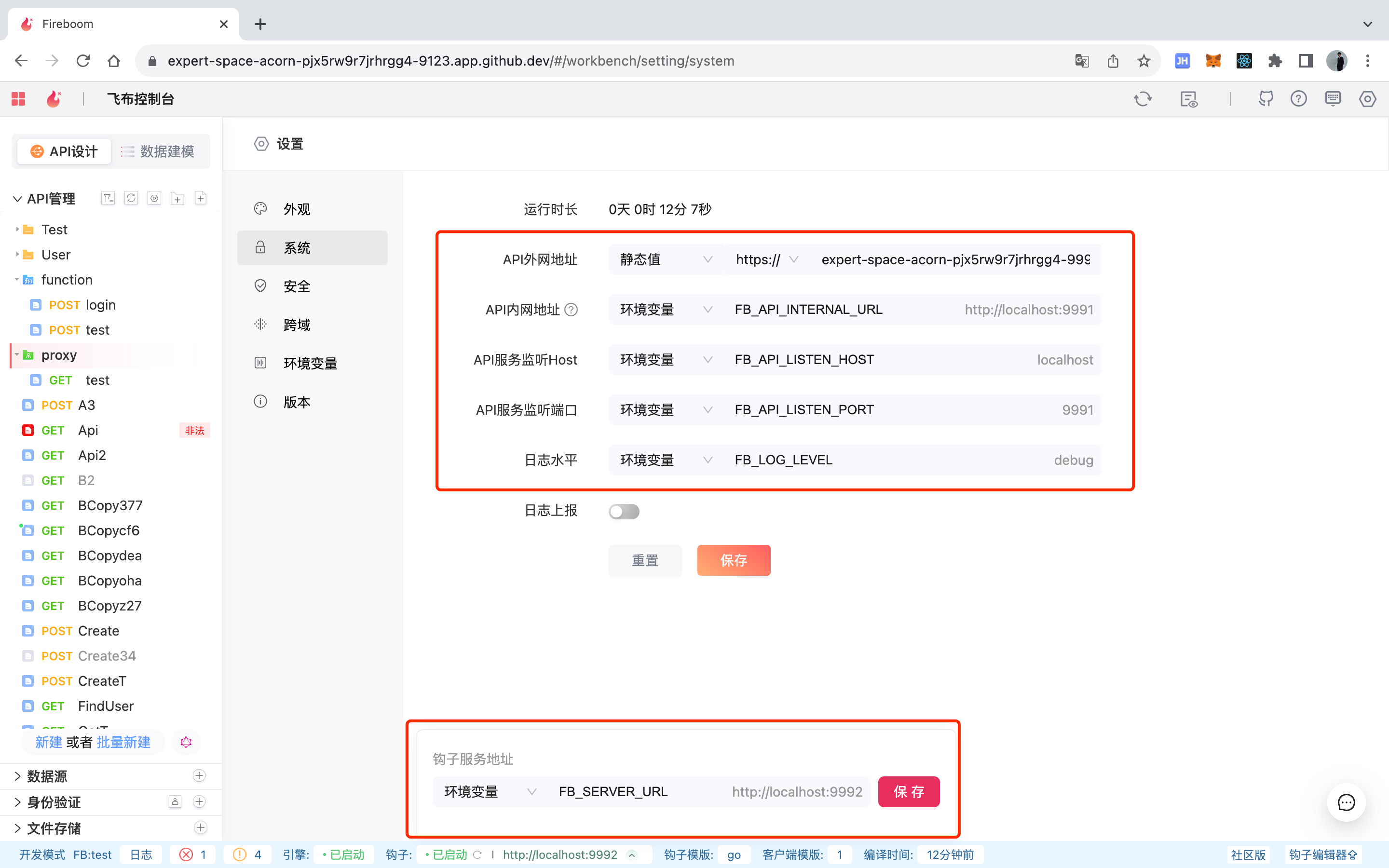 1.0版本的系统配置未支持环境变量，如设置->系统，不同环境迁移时，需要手动处理。