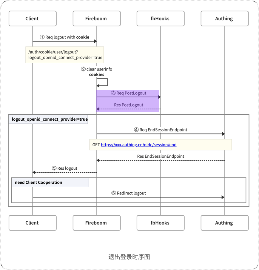 `postLogout` 钩子又名登出钩子，在用户注销后执行。该钩子处于身份验证生命周期的最后一环，主要用于做些收尾操作。