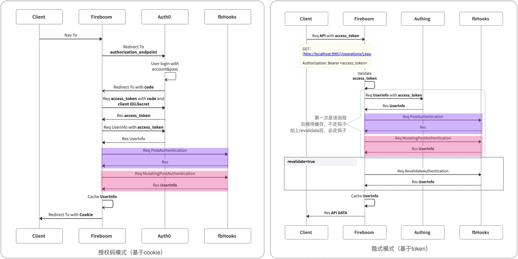 除了授权码模式，隐式模式也支持认证钩子。下面是其时序图。