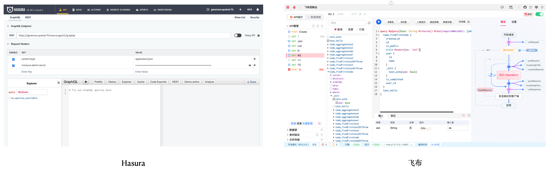 <figure><img src="https://2707494476-files.gitbook.io/~/files/v0/b/gitbook-x-prod.appspot.com/o/spaces%2FNx22Cp3wzkuW1siRbMwW%2Fuploads%2Fgit-blob-31f404400c7c4c8d534b70f90d41573323c1110e%2Fimage%20(18)%20(1).png?alt=media" alt=""><figcaption><p>飞布VS hasura</p></figcaption></figure>