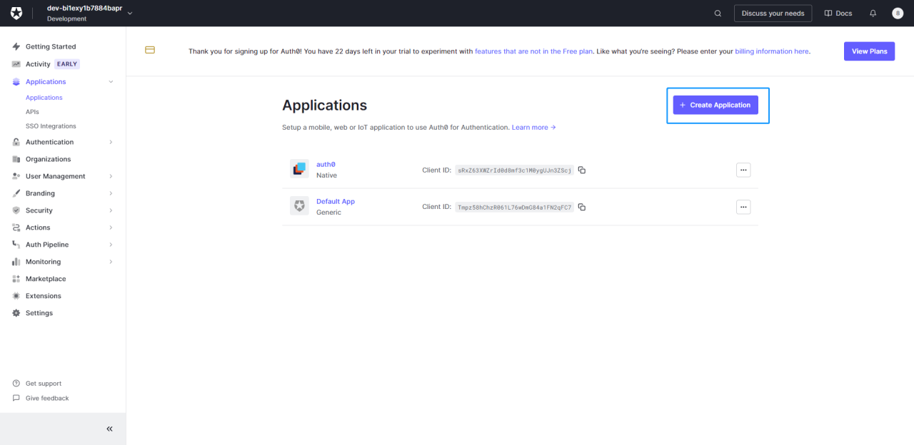 进入Auth0官网<https://manage.auth0.com/，在Applications页面选择或新建一个应用>