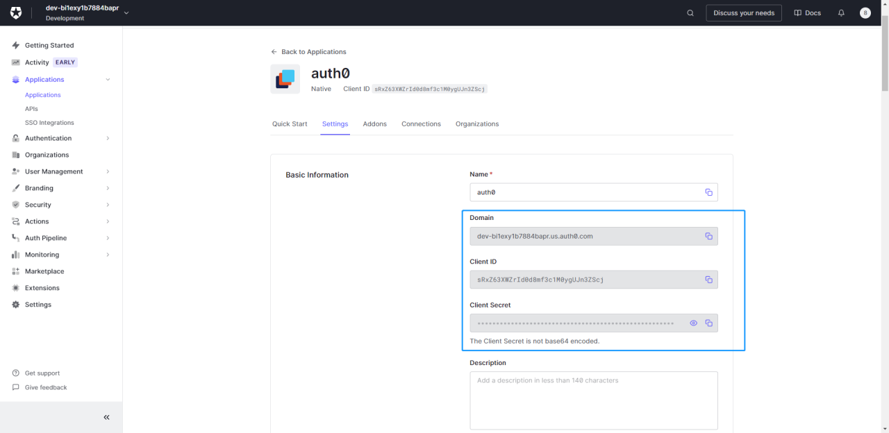 在飞布身份验证模块，进行新增身份验证操作，将Auth0中获取的信息填写至对应的输入框中，保存完成即可（新增页面的供应商ID对应Allowed Callback URLs中的auth0）