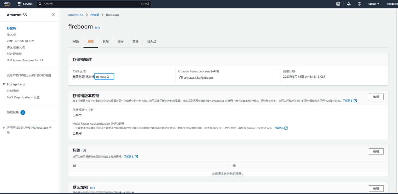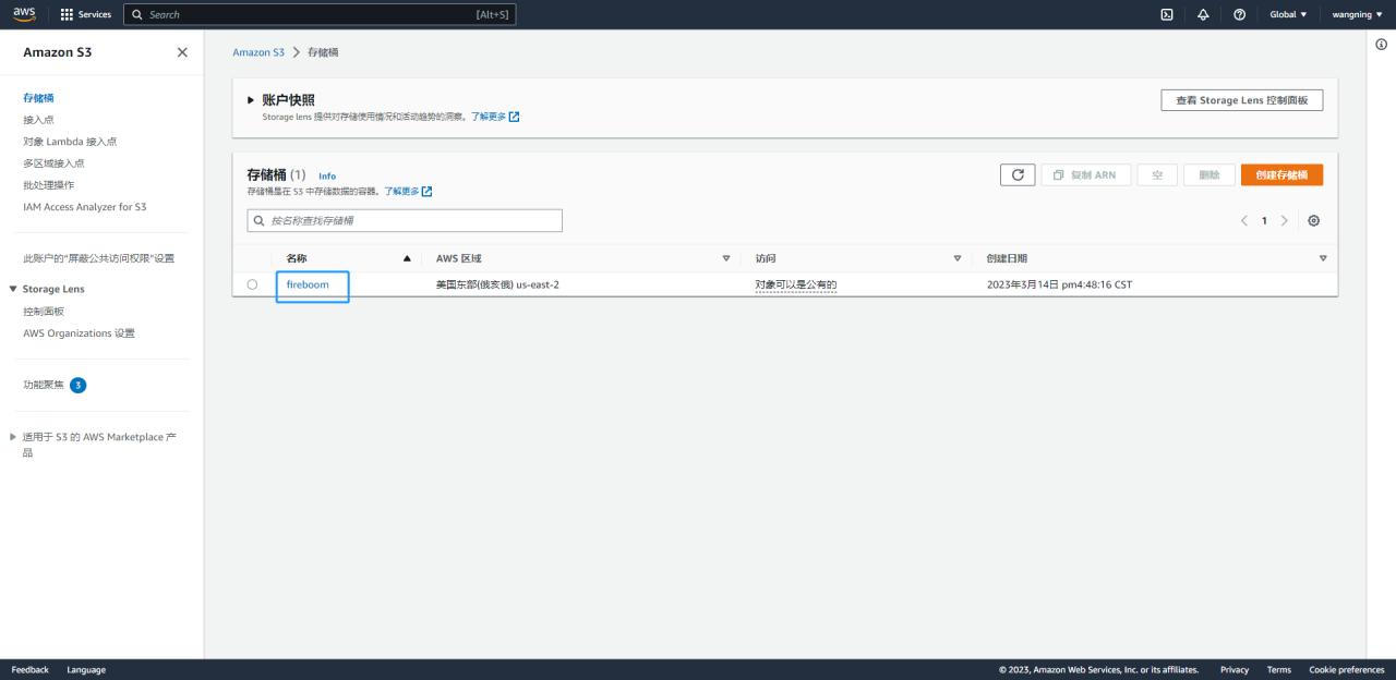 存储桶创建完成后，可在存储桶列表中点击对应的存储桶名称，即可获取存储桶名称、AWS区域信息