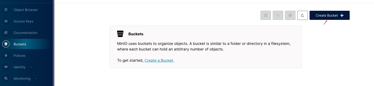 <figure><img src="https://2514536170-files.gitbook.io/~/files/v0/b/gitbook-x-prod.appspot.com/o/spaces%2FhvHBEKUXoqt1bL00q2Ra%2Fuploads%2Fgit-blob-55411fde63215b9428e4a3288e1be20b2b829e9a%2Fminio-bucket.jpg?alt=media" alt=""><figcaption></figcaption></figure>