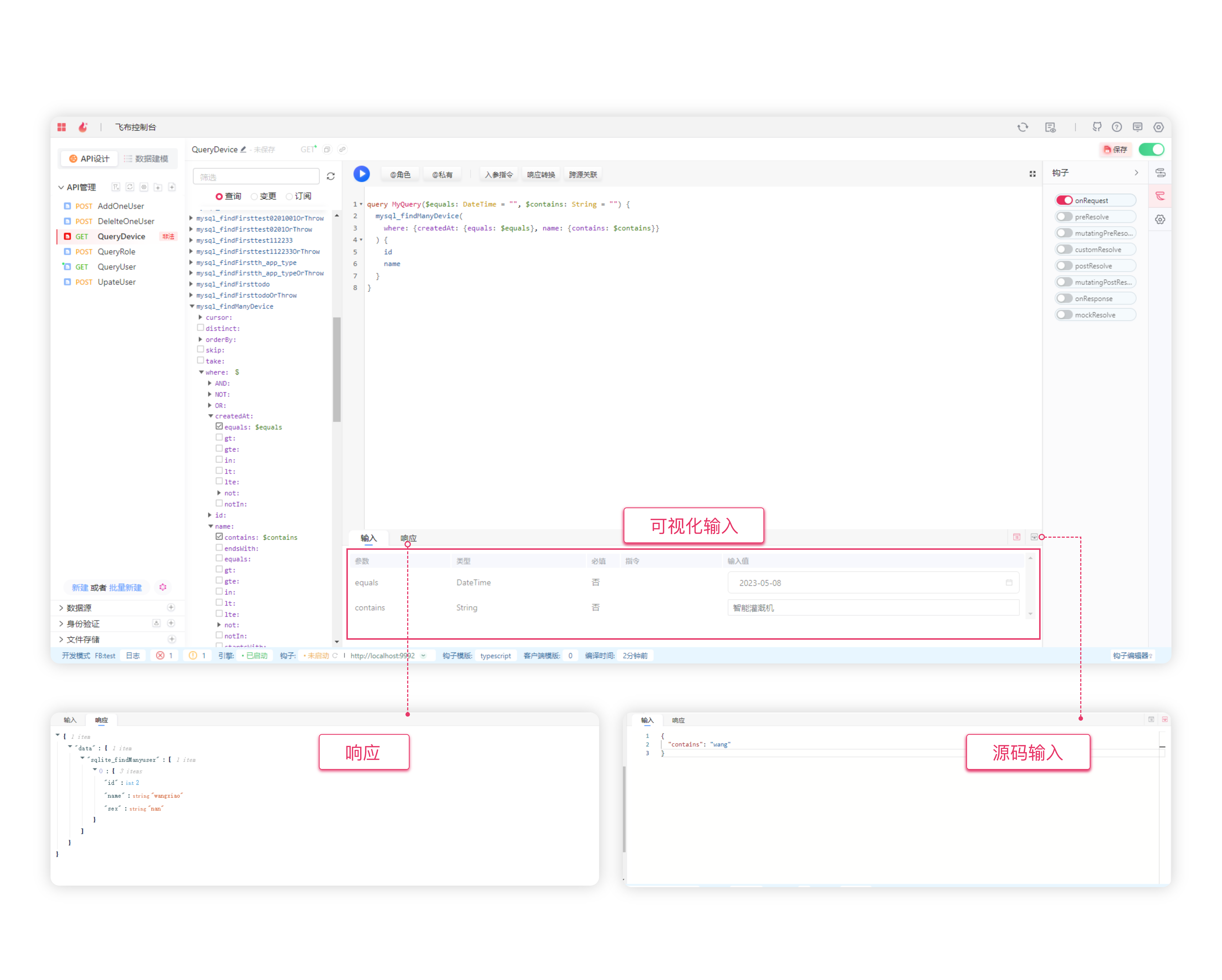 * 可视化输入：用表格的形式展示入参，提供类型校验，和录入组件，如日期录入